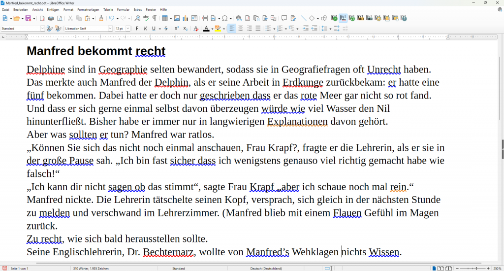 Der Duden Korrektor für LibreOffice kann direkt während der Eingabe korrigieren. Sie müssen die Textkorrektur nicht extra anstoßen, sondern sehen auf einen Blick, wo der Fehlerteufel gewütet hat.